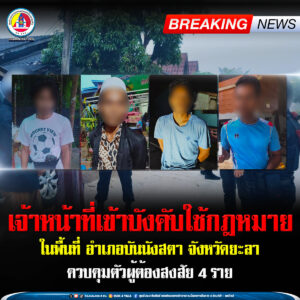 เจ้าหน้าที่เข้าบังคับใช้กฎหมายในพื้นที่ อำเภอบันนังสตา จังหวัดยะลา ควบคุมตัวผู้ต้องสงสัย 4 ราย