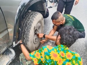 ทหารพราน 46 ช่วยเหลือประชาชนเปลี่ยนยางรถยนต์บริเวณริมถนน อำเภอรือเสาะ จังหวัดนราธิวาส