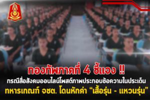 กองทัพภาคที่ 4 ชี้แจงกรณีสื่อสังคมออนไลน์โพสต์ภาพประกอบข้อความในประเด็น “ทหารเกณฑ์ จชต. โดนหักค่าเสื้อรุ่น – แหวนรุ่น”