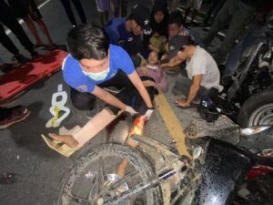 ทหารพรานที่ 46 เข้าช่วยเหลืออุบัติเหตุรถจักรยานยนต์ชนกับรถยนต์ ณ บริเวณสามแยกบ้านท่าเรือ อ.รือเสาะ จ.นราธิวาส