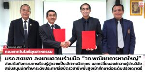 มรภ.สงขลา ลงนามความร่วมมือวิทยาลัยเทคโนโลยีพณิชยการหาดใหญ่ ส่งเสริมกิจกรรมการเรียนรู้สู่ความเป็นเลิศทางวิชาการ แลกเปลี่ยนองค์ความรู้ด้านวิจัย
