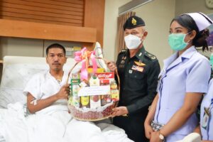 รอง มทภ.4 เยี่ยมให้กำลังใจ ส.ต.ต.ภาณุวัฒน์ฯ เจ้าหน้าที่ตำรวจที่ได้รับบาดเจ็บจากเหตุคนร้ายลอบยิงหน้าฐานปฏิบัติการ