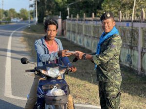 ทหารพราน 44 มอบอินทผลัมและเครื่องดื่มให้กับประชาชนที่สัญจรผ่านไป-มา เพื่อนำไปบริโภคในการละศีลอด