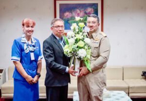 รองผู้อำนวยการท่าอากาศยานหาดใหญ่ (ด้านปฏิบัติการและบำรุงรักษา)ให้การต้อนรับและมอบแจกันดอกไม้แสดงความยินดีแก่เลขาธิการศูนย์อำนวยการบริหารจังหวัดชายแดนภาคใต้ในโอกาสเข้ารับตำแหน่งใหม่