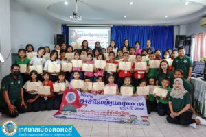 ทม.คอหงส์จัดมอบเกียรติบัตรให้ผู้ผ่านการอบรมผู้นำนักเรียนด้านส่งเสริมสุขภาพ โครงการหงส์น้อยผู้ดูแลสุขภาพ ประจำปี 2566