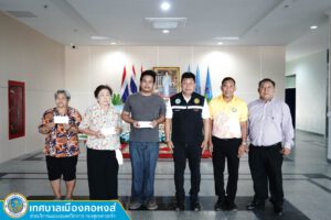 เทศบาลเมืองคอหงส์มอบเงินช่วยเหลือประชาชนเพื่อเยียวยาหรือฟื้นฟูหลังเกิดสาธารณภัย ให้กับผู้ประสบอุทกภัย จำนวน 3 หลัง