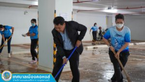 นายกหนอนนำเจ้าหน้าที่เทศบาลเมืองคอหงส์Big Cleaning Dayปรับภูมิทัศน์ให้มีความสะอาดและเรียบร้อยบริเวณโดยรอบอาคารสำนักงานแห่งใหม่