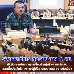 รองเลขาธิการ กอ.รมน.ภาค 4 สน. เปิดกิจกรรมสัมมนาแลกเปลี่ยนเรียนรู้สร้างความเข้มแข็งให้ ชคต. เพิ่มประสิทธิภาพการปฏิบัติงานอย่างต่อเนื่อง