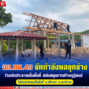 ฉก.ทพ.49 จัดกำลังพลชุดช่าง ร่วมกับประชาชนในพื้นที่ สนับสนุนการสร้างกุฏิสงฆ์ให้กับสำนักสงฆ์ในพื้นที่ อ.ศรีสาคร จ.นราธิวาส