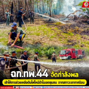 ฉก.ทพ.44 จัดกำลังพล เข้าให้การช่วยเหลือดับไฟไหม้ป่าในเขตชุมชน จากสภาวะอากาศร้อน