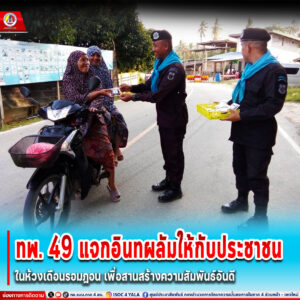 “ทหารพราน 49” แจกอินทผาลัมให้กับประชาชนในห้วงเดือนรอมฎอน เพื่อสานสร้างความสัมพันธ์อันดี
