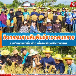 กิจกรรมสานสัมพันธ์ชาวดอนทราย ร่วมกันลงแขกเกี่ยวข้าว เพื่อส่งเสริมอาชีพเกษตรกร