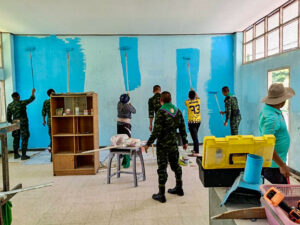 ชาวบ้านและทหารในพื้นที่ ร่วมทำกิจกรรมบำเพ็ญสาธารณประโยชน์สถานที่สำคัญภายในชุมชน สร้างสังคมการอยู่ร่วมกันภายใต้สังคมพหุวัฒนธรรมที่เข้มแข็ง