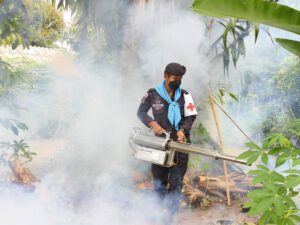 ทหารพรานที่ 46 ร่วมฉีดพ่นหมอกควันกำจัดยุงลาย เพื่อป้องกันและควบคุมการระบาดของโรค