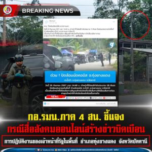 กอ.รมน.ภาค 4 สน. ชี้แจง กรณีสื่อสังคมออนไลน์สร้างข่าวบิดเบือน การปฏิบัติงานของเจ้าหน้าที่รัฐในพื้นที่ อำเภอทุ่งยางแดง จังหวัดปัตตานี