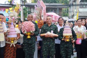 กอ.รมน.ภาค 4 สน. และพุทธศาสนิกชน ร่วมทำบุญทอดกฐินสามัคคี สร้างฉัตรหลวงพ่อโตชำปอกง วัดราษฎร์สโมสร