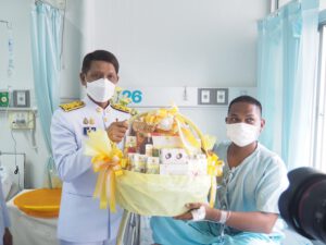 พระบาทสมเด็จพระเจ้าอยู่หัว ทรงพระกรุณาโปรดเกล้าฯ ให้ผู้ว่าราชการจังหวัดยะลา เชิญแจกันดอกไม้ และกระเช้าสิ่งของพระราชทาน มอบแก่เจ้าหน้าที่ทหารที่ได้รับบาดเจ็บ จากเหตุคนร้ายลอบวางระเบิด ระหว่างปฏิบัติหน้าที่ดูแลความปลอดภัยพี่น้องประชาชน ในพื้นที่ อำเภอรามัน จังหวัดยะลา