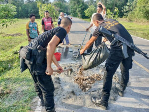 “ทหารพราน 44” เข้าใจ เข้าถึง พัฒนา ช่วยซ่อมแซมผิวถนนที่ชำรุด ในพื้นที่ ต.ปากู อ.ทุ่งยางแดง จ.ปัตตานี