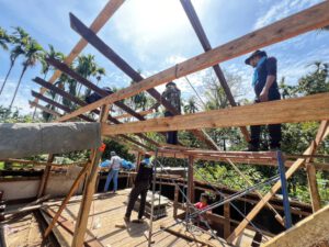 ทหารพราน 45 ร่วมกับผู้นำหมู่บ้าน ซ่อมแซมบ้านเรือนประชาชนที่ได้รับความเสียหายจากฝนตกหนัก ลมกระโชกแรงในพื้นที่ อ.ระแงะ จ.นราธิวาส