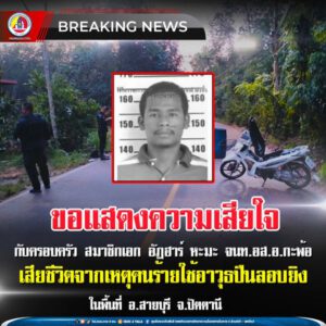 ขอแสดงความเสียใจกับครอบครัว สมาชิกเอก อัฏฮาร์ หะมะ จนท.อส.อ.กะพ้อ เสียชีวิตจากเหตุคนร้ายใช้อาวุธปืนลอบยิงในพื้นที่ อ.สายบุรี จ.ปัตตานี