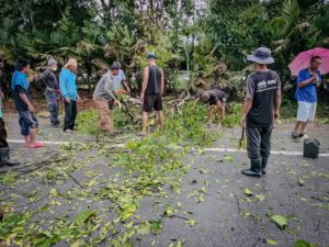 ทหารพราน 45 เร่งให้การช่วยเหลือประชาชน และตัดต้นไม้ที่ล้มขวางทางการจราจร จากฝนตกหนัก และลมกระโชกแรงและมีลูกเห็บตกในหลายพื้นที่ของอำเภอระแงะ จังหวัดนราธิวาส