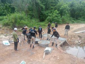 ฉก.ทพ.33 ร่วมกับพี่น้องประชาชนทำการเทพื้นปูนก่อนฝังท่อลอด เพื่อบรรเทาความเดือดร้อนแก่ผู้ที่สัญจรไปมา