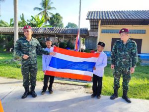 ฉก.สันติสุข ลงพื้นที่ดำเนินกิจกรรมเสาธง 5 นาที เคารพธงชาติ ในพื้นที่ อ.เทพา จ.สงขลา