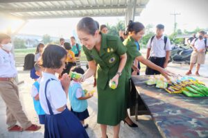 ร.153 พัน.1 และ สมาคมแม่บ้าน ทบ.สาขา ร.153 พัน.1 มอบอาหารมื้อเช้า และขนมให้กับน้อง ๆ นักเรียน เพื่อจะได้รับประทานบนรถโดยสารของหน่วย ก่อนไปโรงเรียน