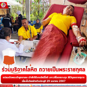 ร่วมบริจาคโลหิต ถวายเป็นพระราชกุศลแด่สมเด็จพระเจ้าลูกยาเธอ เจ้าฟ้าทีปังกรรัศมีโชติ มหาวชิโรตตมางกูร สิริวิบูลยราชกุมาร เนื่องในวันคล้ายวันประสูติ 29 เมษายน 2567