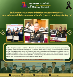 มณฑลทหารบกที่ 42 ร่วมในพิธีลงนามบันทึกความเข้าใจว่าด้วยความร่วมมือทางวิชาการ และการพัฒนาเทคโนโลยีระบบอากาศยานไร้คนขับ (Drone) และปัญญาประดิษฐ์ (AI)