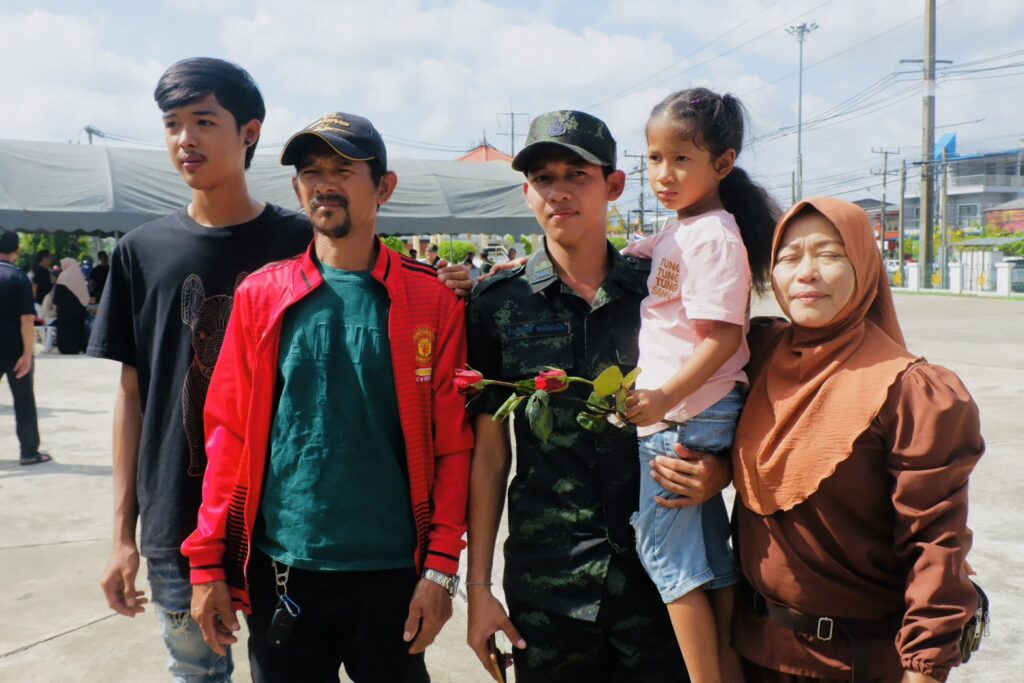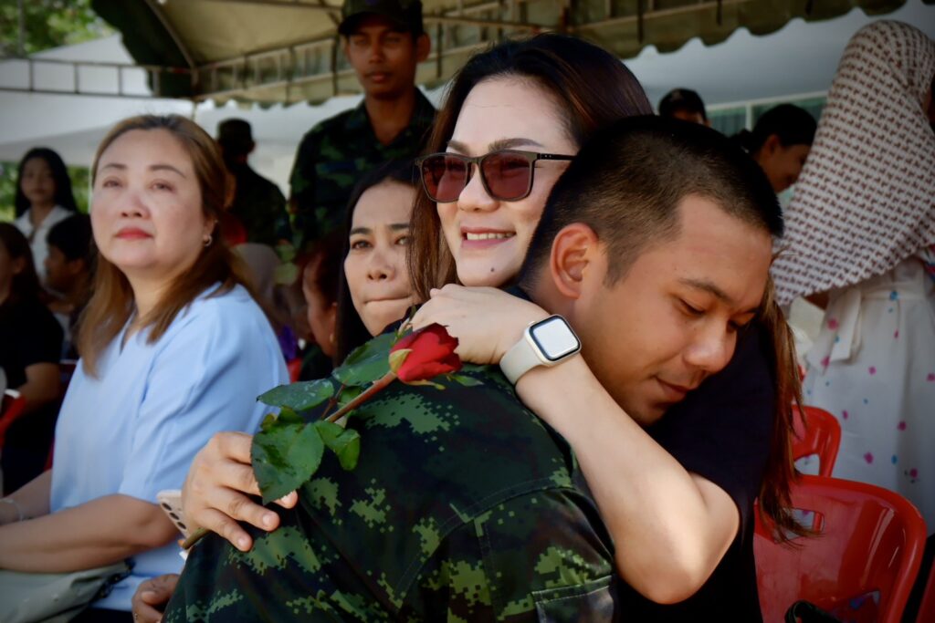 พันเอก ปองพล สุทธิเบญจกุล กล่าวว่า ในนามของมณฑลทหารบกที่ 42 ขอต้อนรับ และขอบคุณญาติน้องๆ ทหารใหม่ทุกท่าน ที่ได้เสียสละเวลาอันมีค่าของท่าน เดินทางมาร่วมกิจกรรมเปิดบ้านทหารใหม่ (Open House) รุ่นปีพุทธศักราช 2568 ผลัดที่ 2 ณ มณฑลทหารบกที่ 42 ค่ายเสนาณรงค์ อำเภอหาดใหญ่ จังหวัดสงขลา ในวันนี้ความมุ่งหมายการจัดกิจกรรม เพื่อร่วมแสดงความยินดีกับทหารใหม่ ในโอกาสสำเร็จการฝึก โดยมีผู้ปกครองร่วมเป็นสักขีพยานแห่งความภาคภูมิใจ และประเด็นสำคัญยิ่ง คือ อยากให้ญาติของทหารใหม่ได้เห็นพัฒนาการ ของบุตรหลานของท่าน จากชีวิตความเป็นวัยรุ่น เข้ามาสู่ค่ายทหาร อีกทั้งให้ท่านได้เห็นถึงความเป็นอยู่ของน้องๆ ทหารใหม่ ความสมบูรณ์แข็งแรงทางด้านร่างกาย และจิตใจ ความมีระเบียบวินัย โดยการฝึกสอนของชุดครูฝึก ที่มีประสบการณ์ในด้านการฝึก การปฏิบัติงานในที่ตั้งปกติ และการปฏิบัติงานในสนามมาถ่ายทอดวิชาความรู้ต่าง ๆ ให้กับน้อง ๆ ทหารใหม่เป็นอย่างดี และขอให้ท่าน ผู้ปกครองคลายความกังวล เรื่องการใช้ชีวิตของน้อง ๆ ทหารใหม่ ที่เข้ามารับราชการในรั้วของกองทัพ ขอรับรองและยืนยันกับผู้ปกครอง และญาติของน้องๆ ทหารใหม่ไว้ ณ ที่นี้ว่า ผู้บังคับบัญชาตามลำดับชั้น ตั้งแต่ท่านผู้บัญชาการทหารบก ท่านแม่ทัพภาคที่ 4 รวมทั้งตัวผมเอง ในฐานะผู้บังคับกองพันมณฑลทหารบกที่ 42 ตลอดจนกำลังพลทุกนาย ต่างมอบความรัก ความห่วงใย ความใส่ใจ และความเมตตาให้กับน้องๆ ทหารใหม่ เปรียบเสมือนเป็นน้องคนเล็กของกองทัพบก หรือญาติพี่น้องในครอบครัวเดียวกัน ที่จะต้องปฏิบัติงานร่วมกัน ซึ่งถือว่าน้อง ๆ ทหารใหม่ได้เสียสละความสุขส่วนตัวมาใช้ชีวิตทหาร เพื่อรับใช้ชาติบ้านเมืองต่อไป